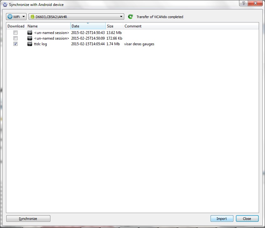 6.1.2 Download ViCANdroid logs to ViCANdo via the same network¶