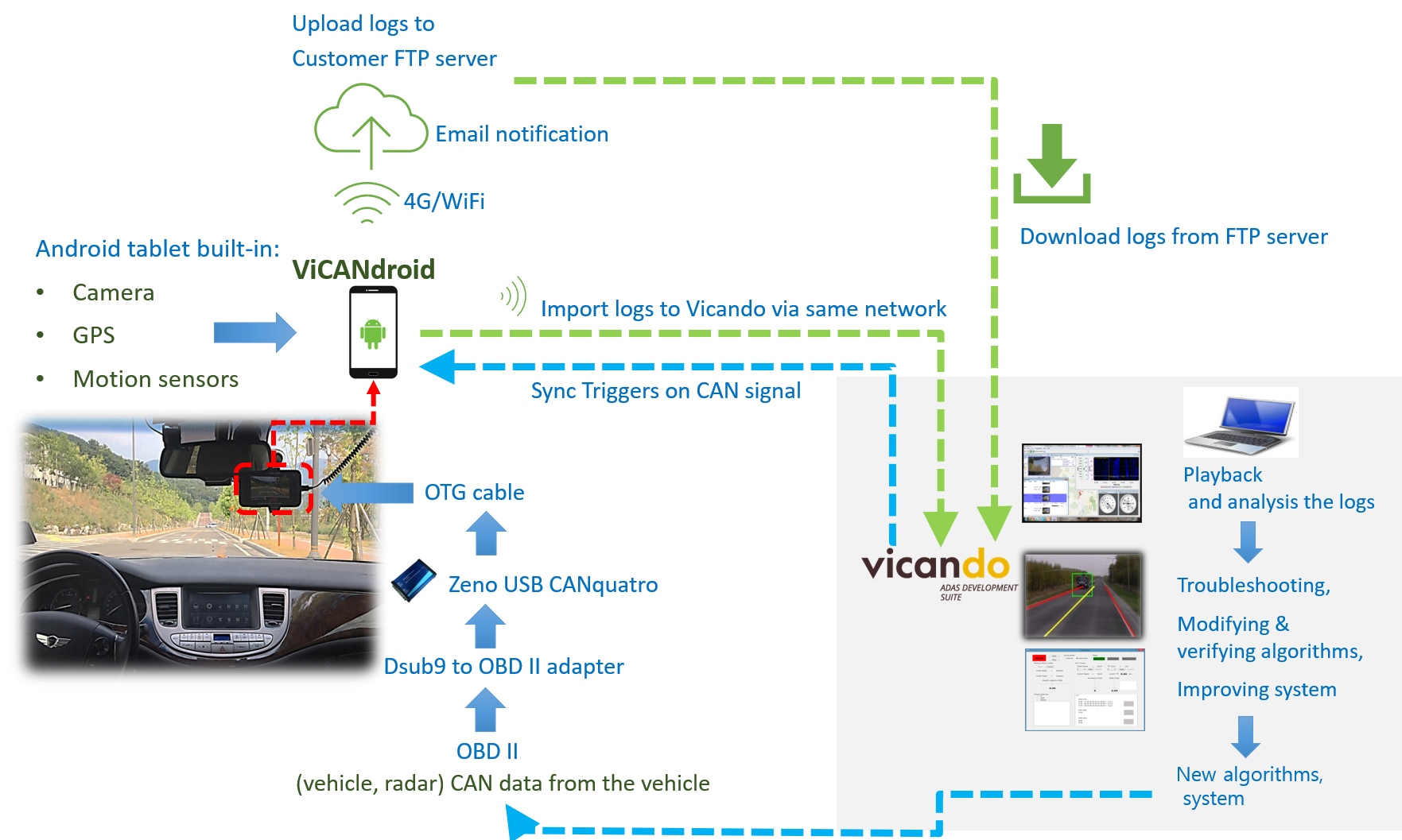 It is also possible for ViCANdo to download the logs recorded by ViCANdroid app from the FTP server if the ViCANdroid is configured to upload the logs to the FTP server.