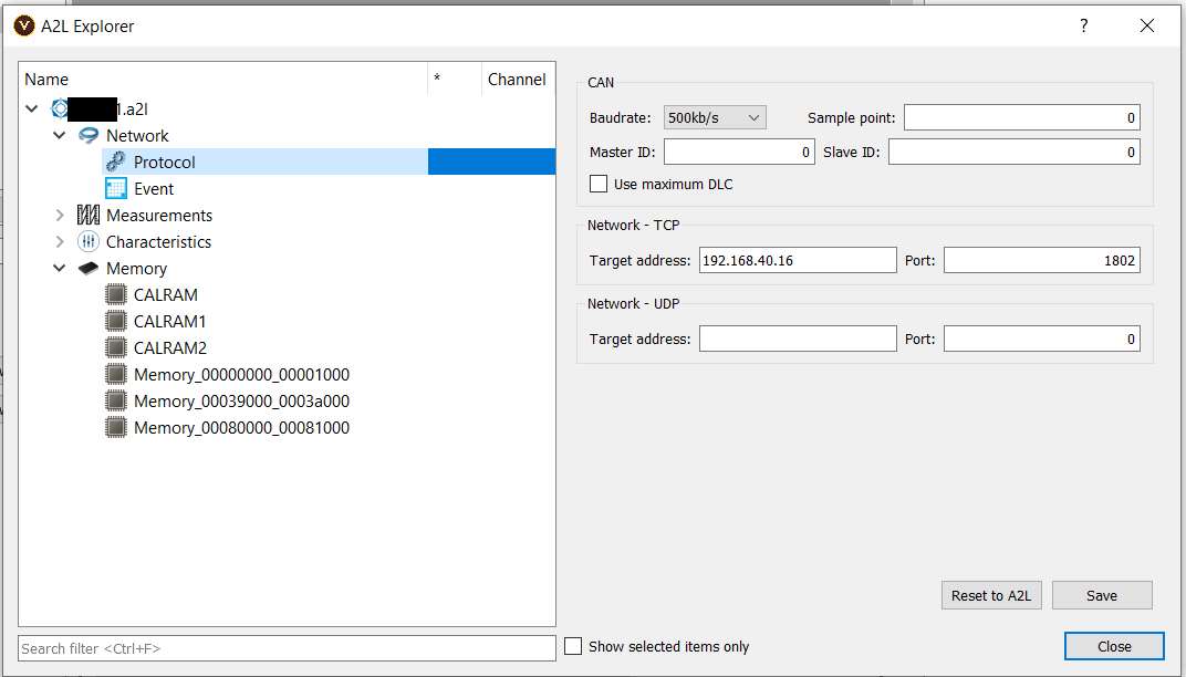 It will open the A2L explorer window from where you can read and write the measurements, characteristics and memories: