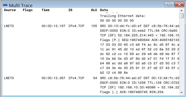 - Filter tcp will make Multi Trace display only the TCP traffic.