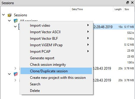 To see how the sensor data works in ViCANdo, you can download the PCAP file and then create an empty project in ViCANdo. Right click on All sessions and select Import PCAP: