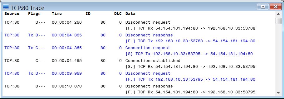 - Filter port 80 will make the trace display only the traffic on port 80.