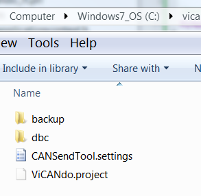 Create a folder, e.g. myappproj in your Qt application directory, and then paste the ViCANdo.project, CANSendTool.settings and dbc folder(contains the DBC file) to myappproj folder. e.g.